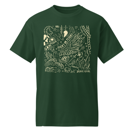 4XL & 5XL Fight Or Flight Doodle Plus Size Tee Forest Green (Online Exclusive)